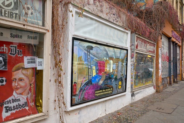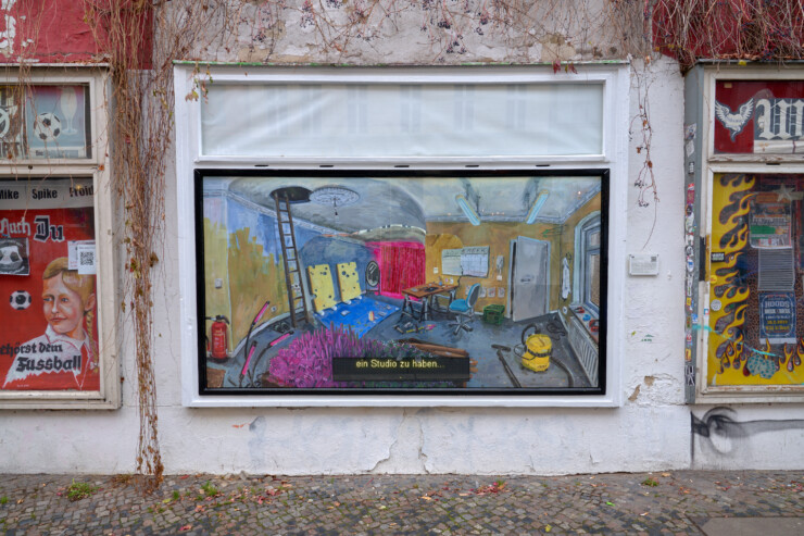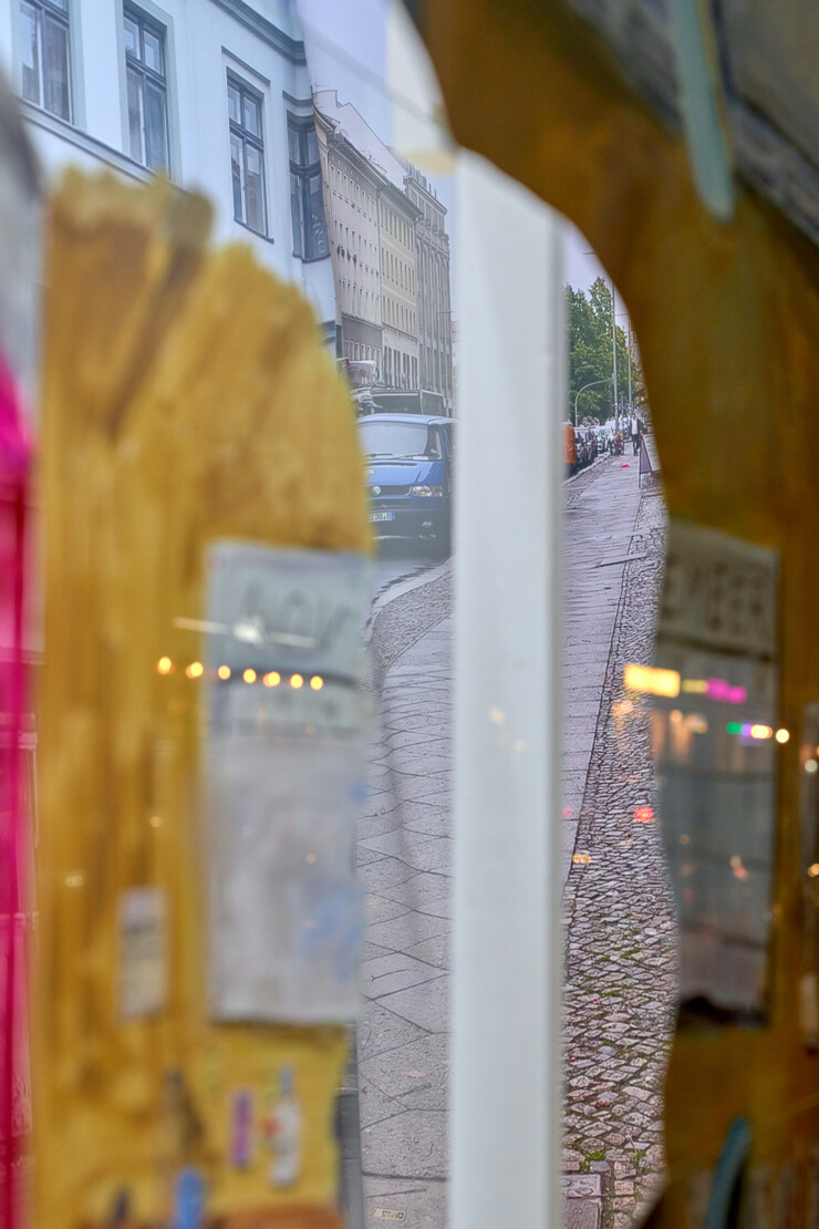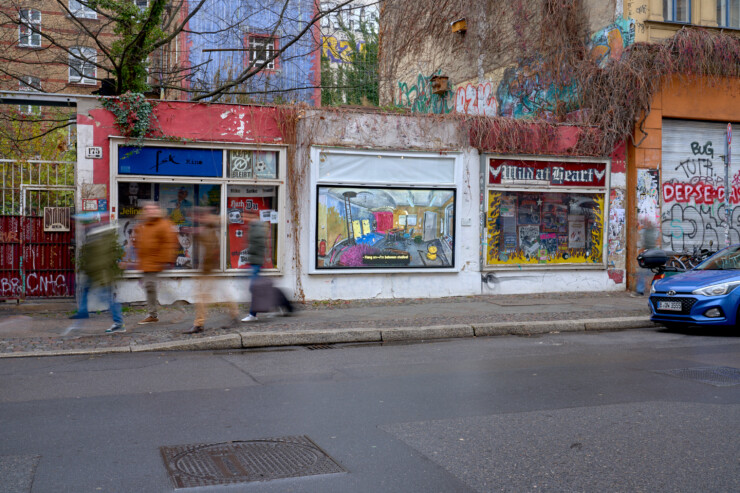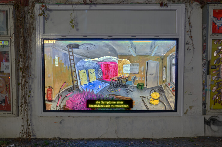 Everyone is excited about the second part before they have seen the first. That sounds curious but it is true I can tell you in a few words like a love poem. “Love is not love which alters when it alteration finds…”, Shakespeare wrote in Sonnet 116. This phrase fits well because I would like to show the popular elements in the work without telling what will happen. The play is text and picture based and has a time frame in which we can follow three dialogs on a LED display while the movie is built up like a multi-layered stage in the window.