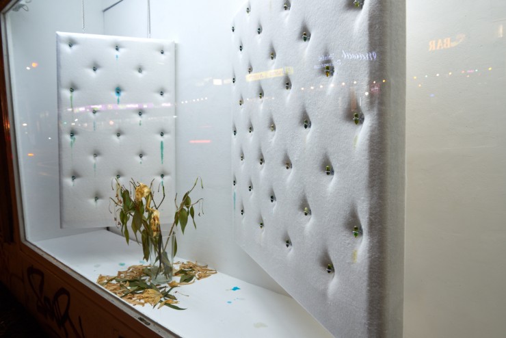A person walks down the street in Berlin. She is known by her city at least as well as Athenians were known by theirs. The city knows when she bleeds; her phone offers a coupon for menstrual products on the day it begins. The city sits on her back like a saddle. Those who rent the right to ride her do so until she becomes insane. Until she smashes a shop window, not noticing its proportions are 1:2, the same as the rectangle that defines the Parthenon’s front facade. She climbs over the shards still held in the windowframe. She kicks the shoes off their stands and into the street, tossing her own after them. She lies in the broken glass at the bottom of the shopwindow. The stale air flows out into the street. She spasms and her back arches. Her shoulders mute the squeal of glass beneath them. She screams again and again. These echo off the city.