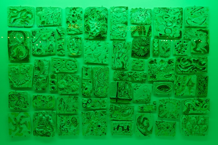 A non-integrated self, desired in the present, left in the past, walking with a cloud of thunder and a joker face into 15 years of future. Creating a tomb for romantic ideas to avoid thinking about tomorrow. Defeating the daily giants, still haunted by the enchanted souls of the nonbinary. An empty, lifeless castle covered in poison ivy, and sweet Oreo cookies appeal to the absence inside. Damp and doubtful masks falling in a space of nothingness with punk music playing in the background. Guts exploding, spikes growing from within, contributing to the erasure of meditative ashes.