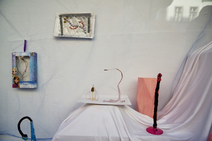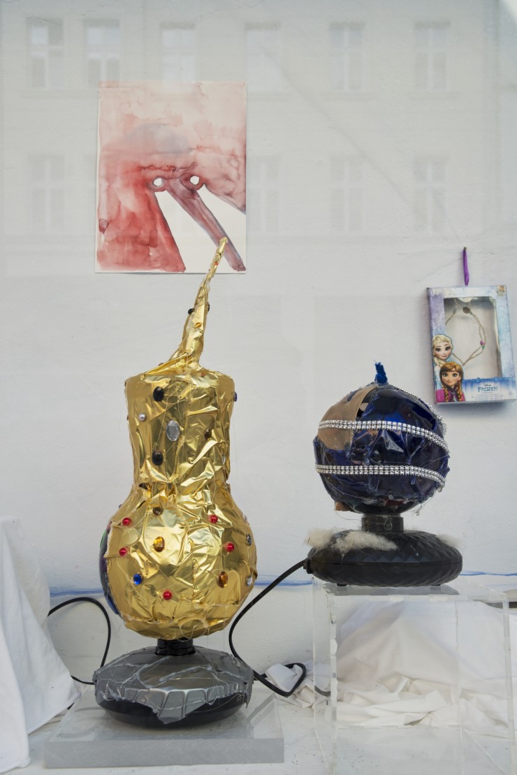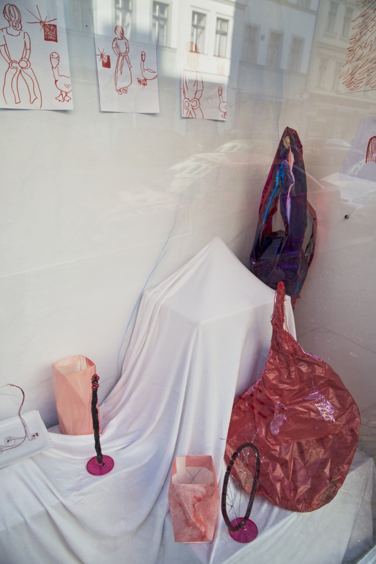 Die Skulpturen und Malereien von Okka-Esther Hungerbühler haben etwas provisorisches, aus Bastelresten auferstandenes. Das Wort basteln stammt von dem spätmittelhochdeutschen, bayrischen Wort pästeln ab und beschreibt eine Handwerksarbeit, die ohne die Zugehörigkeit zu einer Zunft verrichtet wird. Ihre Arbeiten heben sich mit einer fremdartigen Leichtigkeit von ihrer Herkunft und ihrem Ausgangsmaterial ab und scheinen alles vertraute von der klassischen Form abzustoßen. Jede Assoziation wird analog zu unserer Wahrnehmung durch Bewegungen behindert und bekommt eine neue Richtung zu den Dingen, die sich so vor uns auftun, wenn der Winter kommt.